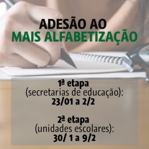 primeira etapa do processo de adesão ao Programa Mais Alfabetização deve ser realizada pelas secretarias municipais, estaduais e distrital de educação até sexta-feira, dia 2 de fevereiro, por meio do módulo PAR do Sistema Integrado de Monitoramento Execução e Controle (Simec).