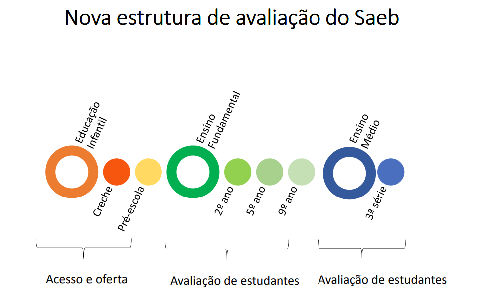 Uma amostra de estudantes do 9º ano de escolas públicas e privadas fará os testes de ciências da natureza e ciências humanas com referência na Base Nacional Comum Curricular (BNCC), aprovada em 2017. A BNCC também será a referência para a avaliação dos alunos do 2º ano do ensino fundamental, que também participarão do Saeb pela primeira vez.