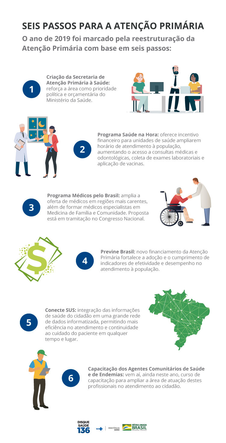 A busca por melhores resultados em saúde será feita a partir da avaliação das Equipes de Saúde da Família, progressivamente, com base em 21 indicadores. Para 2020, serão sete indicadores no âmbito da saúde da mulher, saúde das crianças, doenças crônicas e gestantes. Serão avaliados, por exemplo, número de consultas de pré-natal e vacinação. A cada quatro meses, a partir de setembro de 2020, as equipes serão avaliadas para mensuração dos valores de repasse aos municípios.