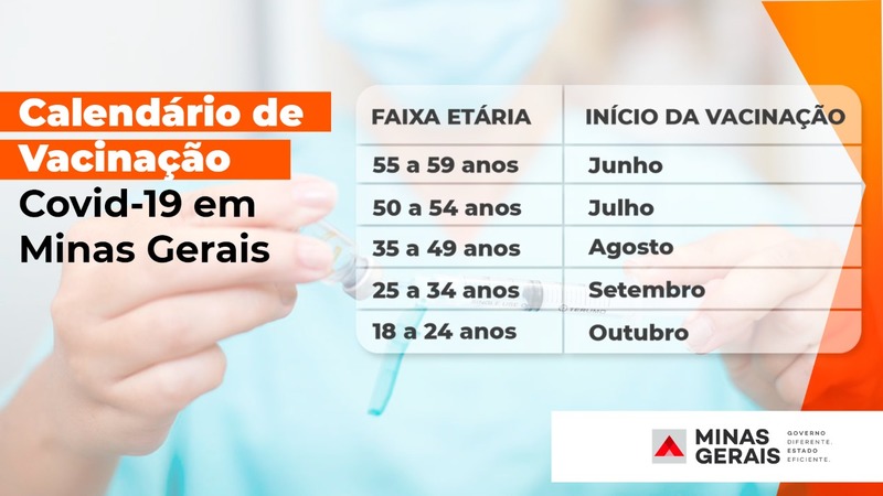 “A expectativa do Ministério da Saúde é de enviar 38 milhões de doses para todo o país em junho, 35 milhões para julho, 68 milhões para agosto, 62,5 milhões para setembro e 65 milhões para outubro. Diante disso e do histórico de que 10% das doses vem para a Minas, porque a população mineira equivale a cerca de 10% do país, temos essa expectativa por faixa etária da vacinação com a primeira dose em todo o estado”, explicou o secretário de Saúde.